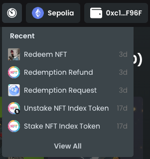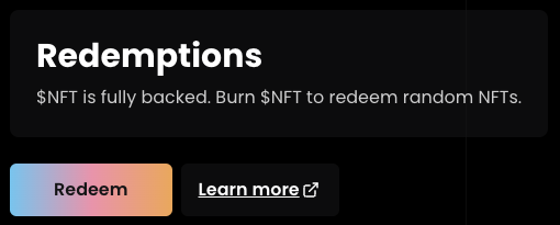 Selecting the Redeem button opens a modal where you can enter the amount of NFTs to redeem. The protocol will tell you how many you can redeem based on the amount of Fungify NFT Index Tokens in your wallet.